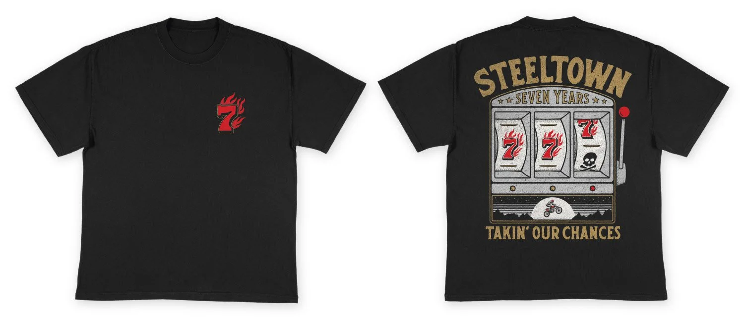 About: Steeltown Garage Co. is a coffee shop in Hamilton, Ontario, that is a hub for motorcycle enthusiasts and free spirits. I had the opportunity to design the merchandise for their 7-year anniversary, contributing to their ongoing celebration of craftsmanship, community, and the open road.